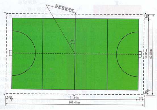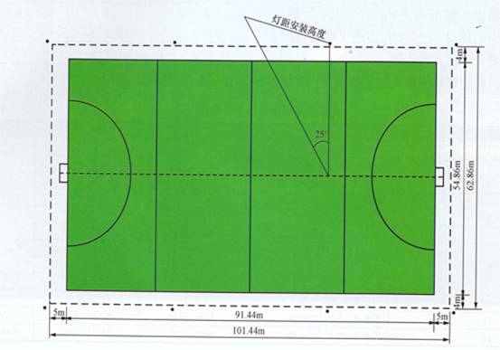 如果場(chǎng)地僅用于非競(jìng)賽類比賽和體能訓(xùn)練,照明裝置的安裝高度為15m,如果場(chǎng)地還用于球類訓(xùn)練和俱樂(lè)部比賽,設(shè)計(jì)時(shí)要考慮眩光的影響,照明裝置的安裝高度至少要18m。