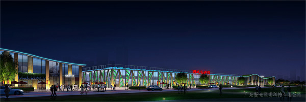 廣場(chǎng)照明采用地埋燈起到引導(dǎo)作用,并通過(guò)LED燈組成的WELCOME在各色光的點(diǎn)綴下形成奪目的迎賓街道。項(xiàng)目整體通過(guò)點(diǎn)線面,及動(dòng)靜相結(jié)合的手法,創(chuàng)造一個(gè)有機(jī)的照明整體,讓人感受到強(qiáng)烈的商業(yè)氣息。