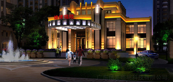 環(huán)境燈光—一水體、綠化等一起烘托建筑主體。