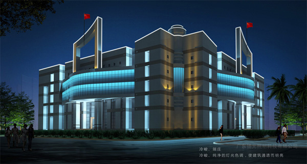 本次設計范圍為行政辦公建筑,針對建筑功能特點,我們的燈光定位為簡潔、高雅,通過純凈、明亮的燈光,來體現(xiàn)公正、開放、廉明的政府形象。