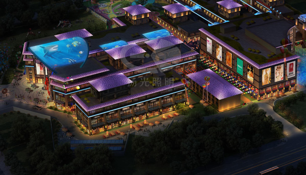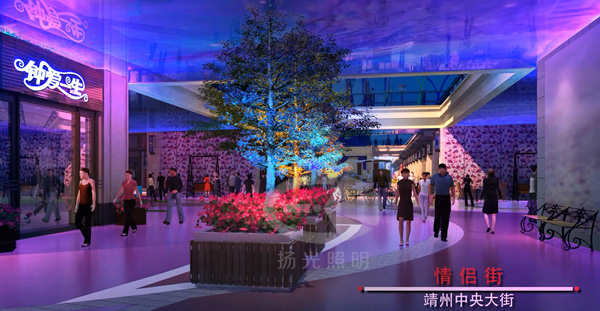 情侶街——采用藍(lán)色、紫色等彩色的燈光,來營造一個即神秘、又浪漫的一個燈光氛圍,讓臉上洋溢著甜蜜笑容的戀人們漫步其中。