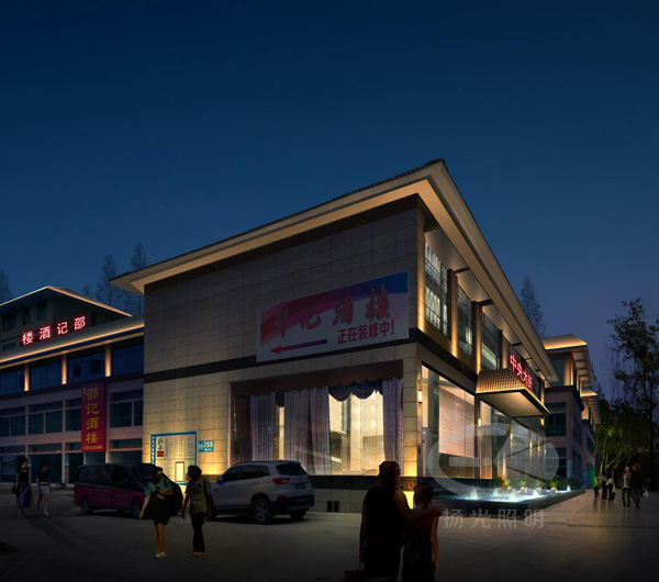 售樓部——主要采用暖黃色的燈光照亮建筑立面,鮮亮的黃色光給人們溫暖的感覺,同時也有高貴、大氣、尊貴的寓意。