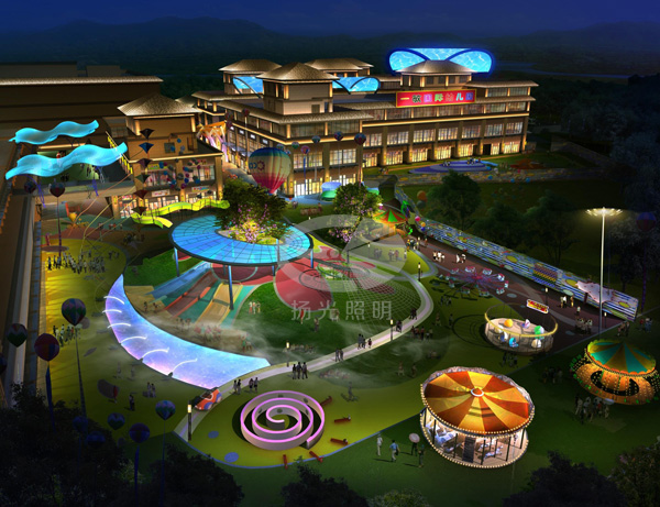 游樂場——采用豐富活躍的燈光,照亮和點(diǎn)綴游樂場內(nèi)的色彩鮮明的游樂設(shè)施。吸引人們的眼球,同時在游樂場上設(shè)置高桿燈,以滿足功能照明需求,使在此玩樂的人們不僅能享受游樂園帶來的歡樂,還有一個安全、明亮的燈光氛圍。