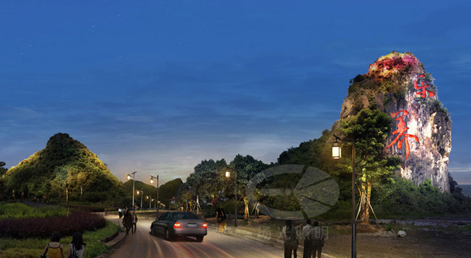 入口山體“樂(lè)養(yǎng)”字體燈光設(shè)計(jì)+山體燈光