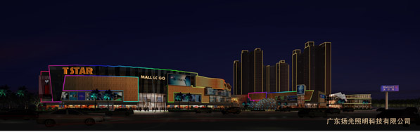采用黃光渲染莊重古樸的門樓形象,加以彩色燈光活躍中軸夜間環(huán)境。